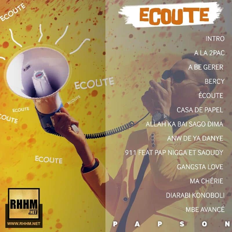 PAPSON dévoile son tout nouvel album ÉCOUTE, composé de 13 morceaux, dont 1 seul featuring, avec PAP et SAOUDY, entièrement produit par Gaspa One Music et Papdjo Records.